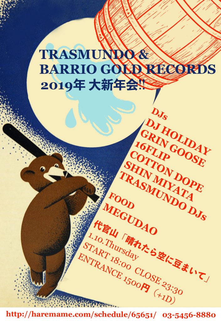 ◆出演 DJs: DJ HOLIDAY GRIN GOOSE 16FLIP COTTON DOPE SHIN MIYATA TRASMUNDO DJs FOOD: MEGUDAO ◆時間 開場...