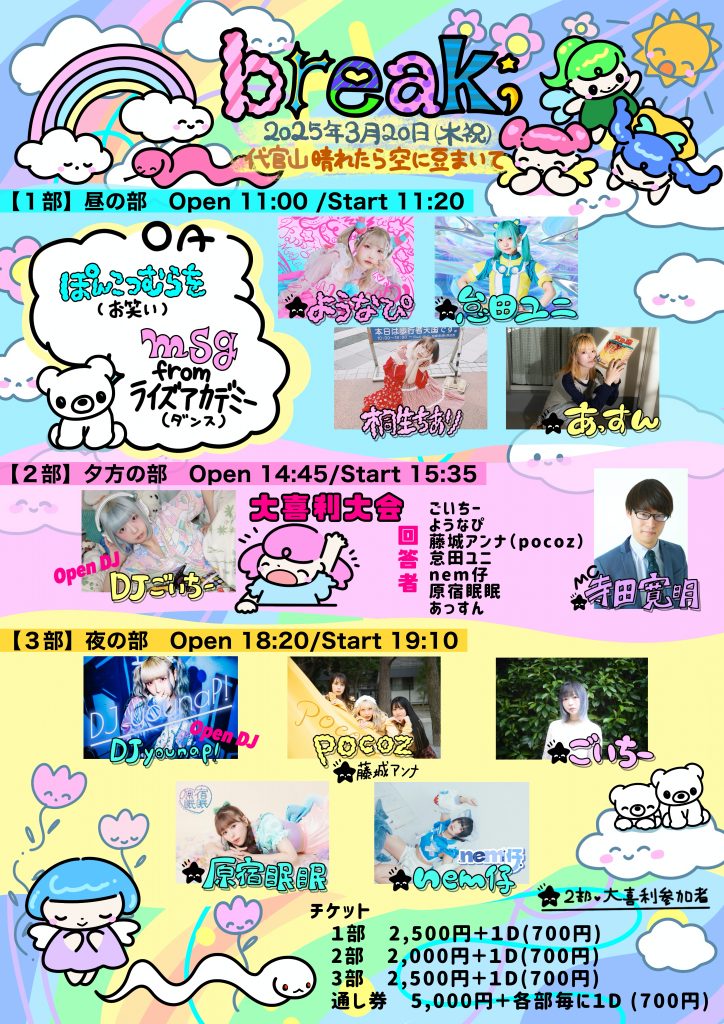 【3部】夜の部 / OPDJ:DJ younaP! / nem仔 / 原宿眠眠 / ごいちー / pocoz