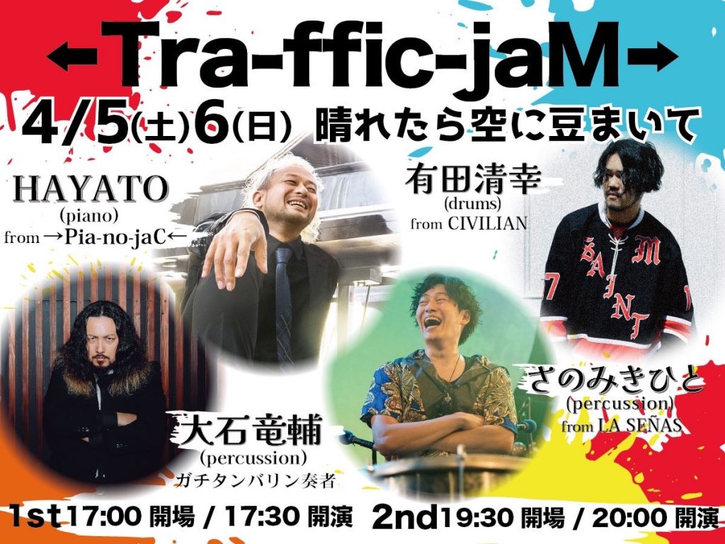 [出演]HAYATO (piano) from→Pia-no-jaC← 大石竜輔 (percussion) ガチタンバリン奏者 有田清幸 (drum) from CIVILIAN さのみきひと (percussion) from LA SENAS
