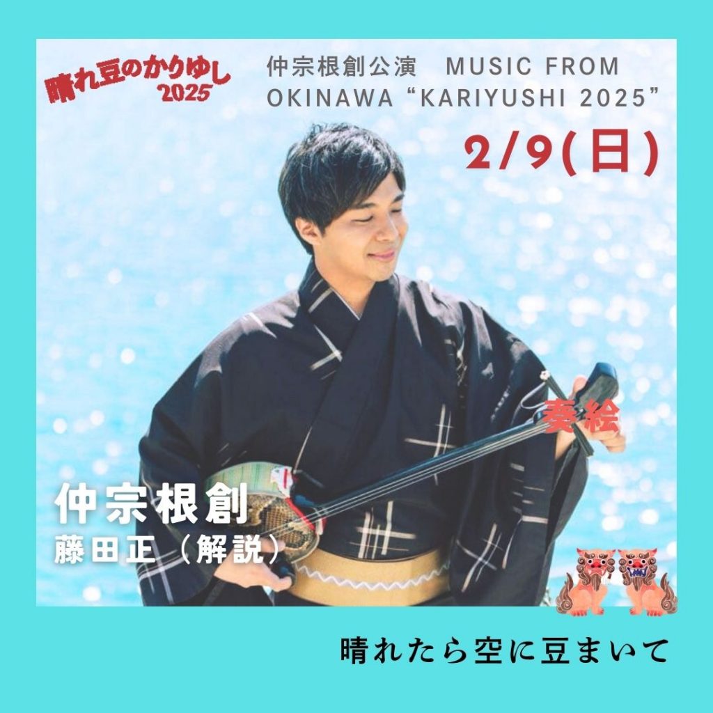 昨年の<はじめ・晴れ豆ライブ>の高評を受けて、2025年の「新年」も仲宗根創がオキナワの歌をお届けする。旧正月(1月29日)の余韻もそのままに、あの唄三線が代官山へやってくる。